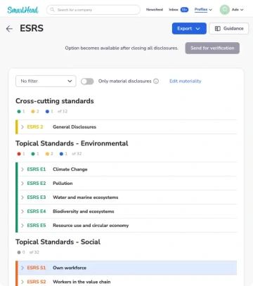 Vaše materiálne témy budete reportovať presne v štruktúre, ako je požadované legislatívou. Túto štruktúru vám zobrazí náš softvér automaticky, na základe výsledkov procesu určenia materiality.